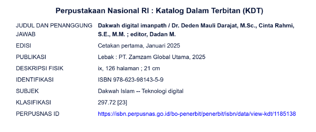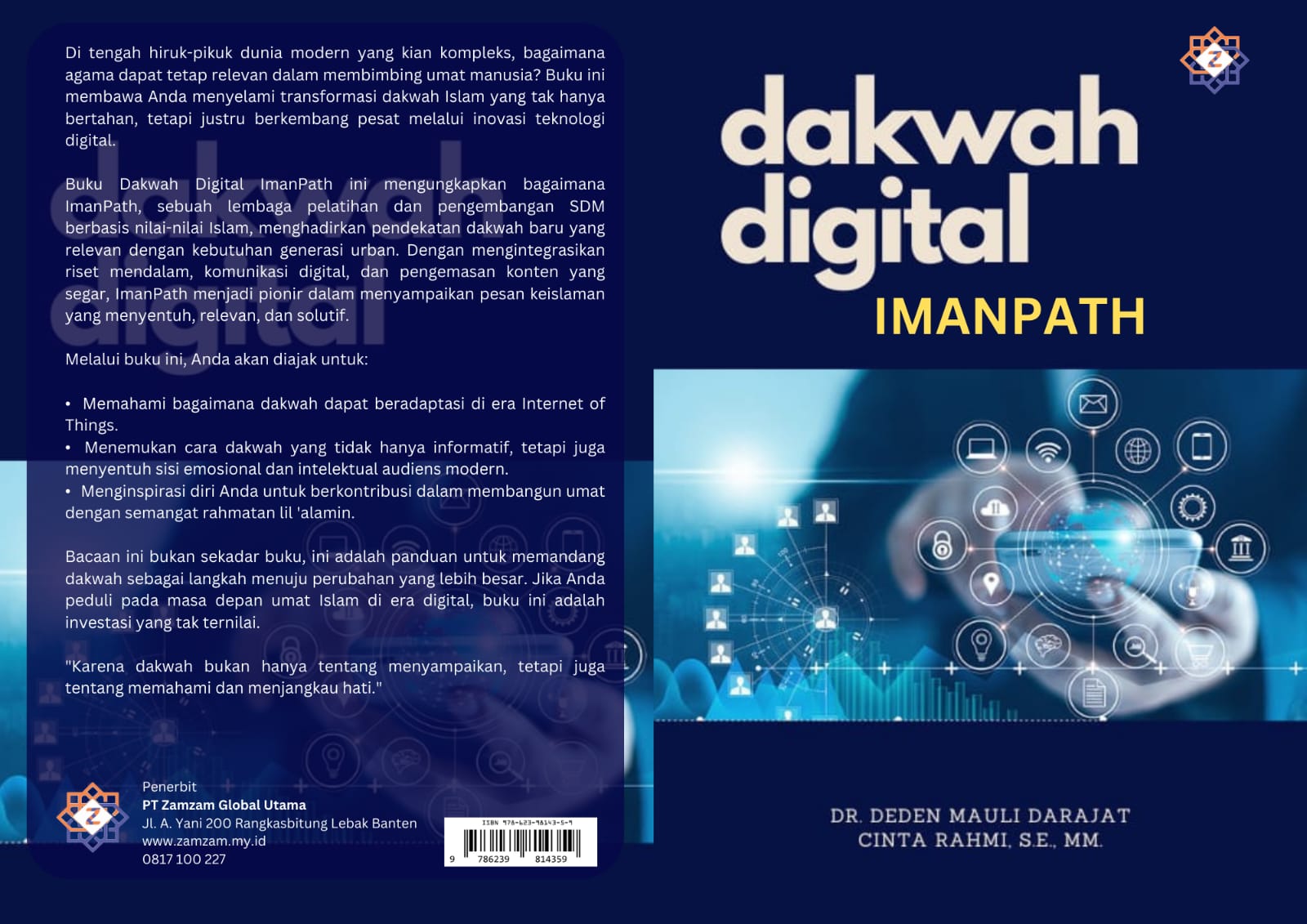 Buku Dakwah Digital ImanPath ini mengungkapkan bagaimana ImanPath, sebuah lembaga pelatihan dan pengembangan SDM berbasis nilai-nilai Islam, menghadirkan pendekatan dakwah baru yang relevan dengan kebutuhan generasi urban. Dengan mengintegrasikan riset mendalam, komunikasi digital, dan pengemasan konten yang segar, ImanPath menjadi pionir dalam menyampaikan pesan keislaman yang menyentuh, relevan, dan solutif.